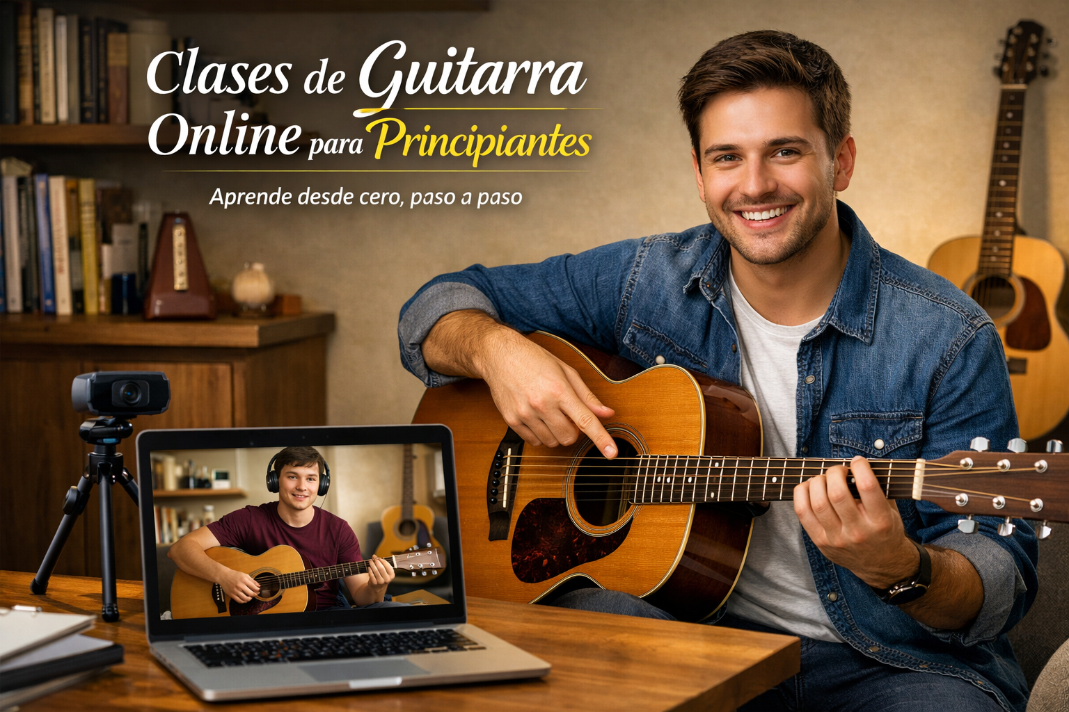Mis clases de guitarra online para principiantes están diseñadas para quienes desean aprender guitarra desde cero de forma clara y práctica. Aprende acordes básicos, ritmo y tus primeras canciones desde la comodidad de tu hogar con un curso de guitarra online guiado paso a paso. Contáctame para comenzar. 🎸