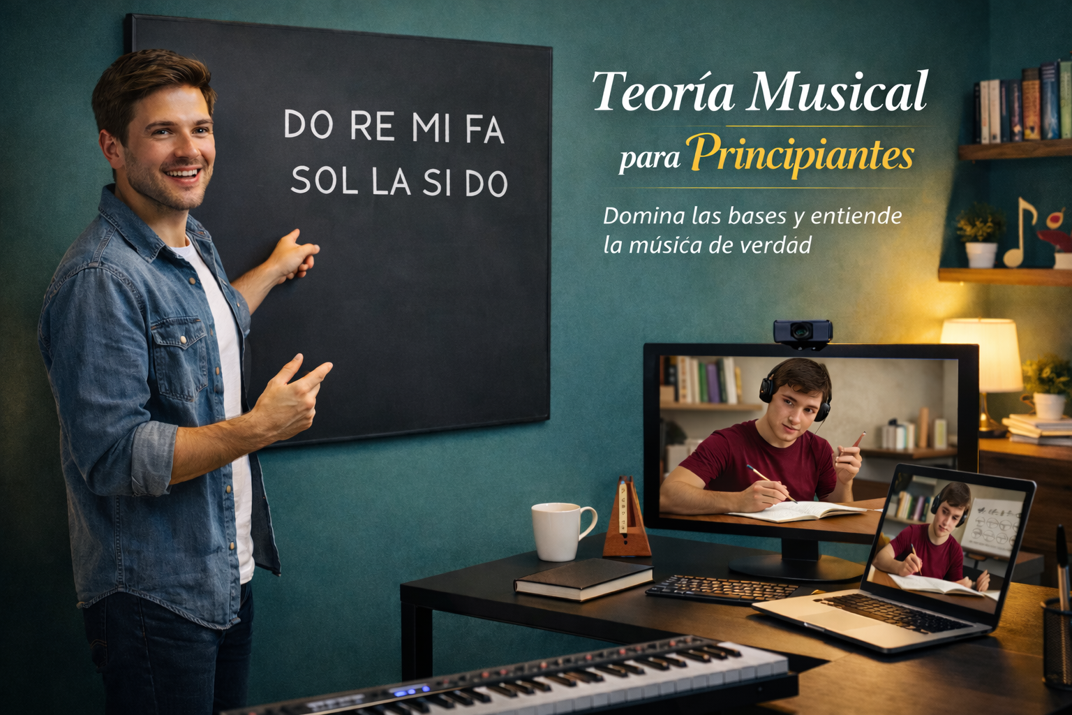 Mis clases de teoría musical online para principiantes te ayudan a aprender teoría musical desde cero de forma clara y progresiva. Aprende lectura musical, ritmo, escalas y acordes desde la comodidad de tu hogar con un curso de teoría musical online diseñado para desarrollar bases musicales sólidas. Contáctame para comenzar. 🎼